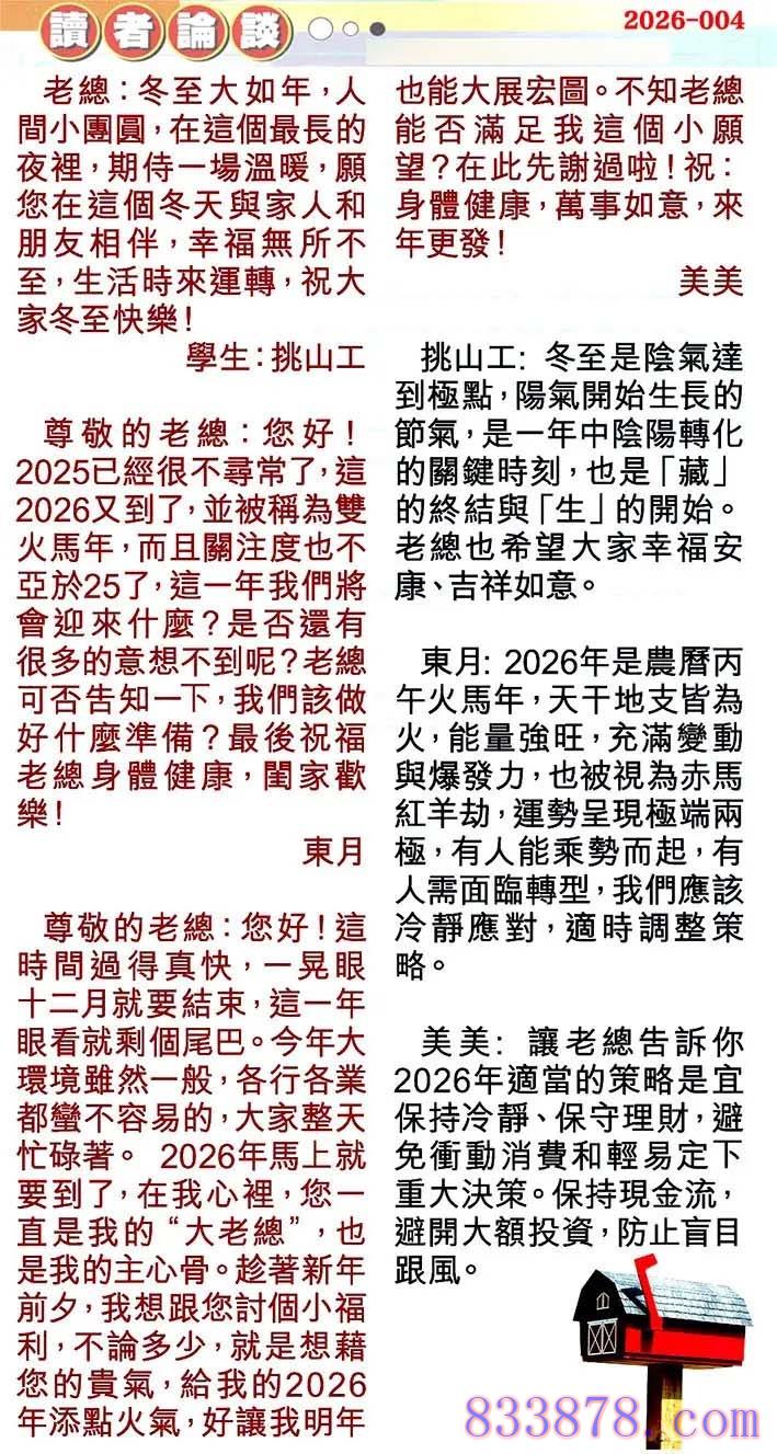 004期:彩民推荐贴信读者论坛