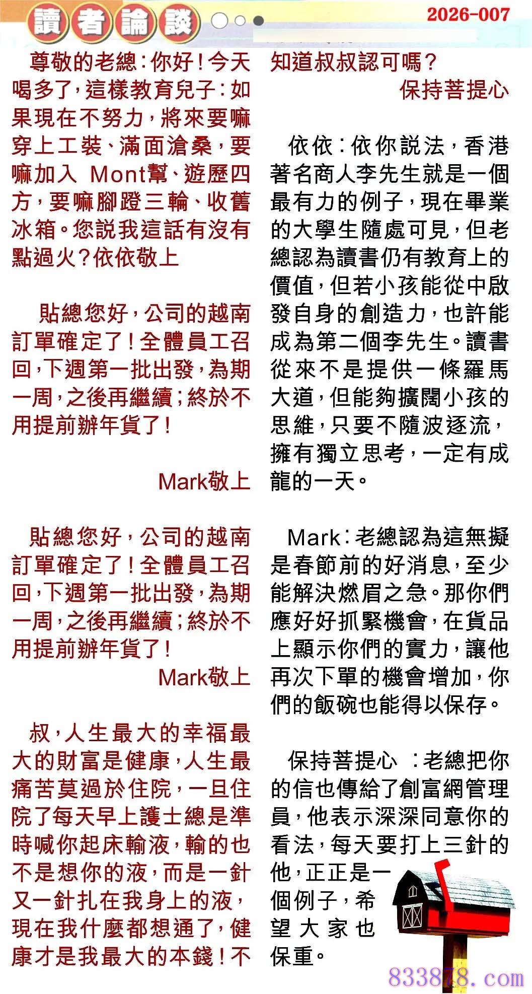 主题 : 007期:彩民推荐贴信读者论坛