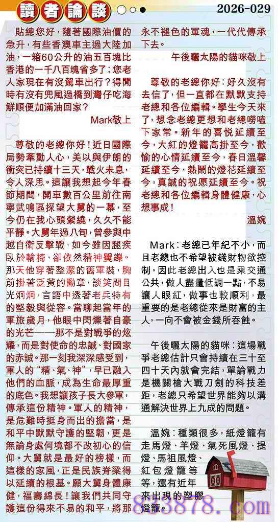 029期:彩民推荐贴信读者论坛