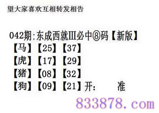 042期:另版【东成西就四肖8码】