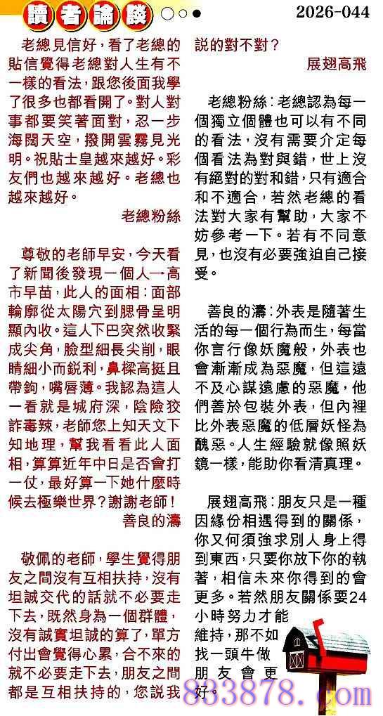 044期:彩民推荐贴信读者论坛