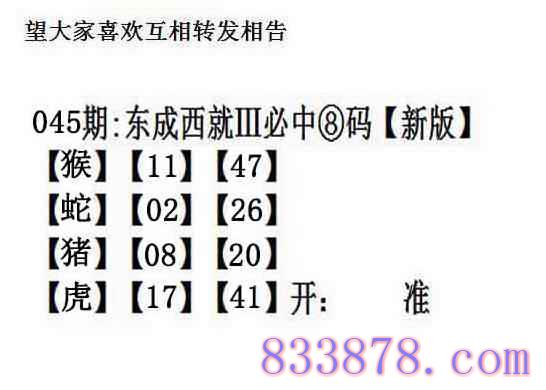 045期:另版【东成西就四肖8码】